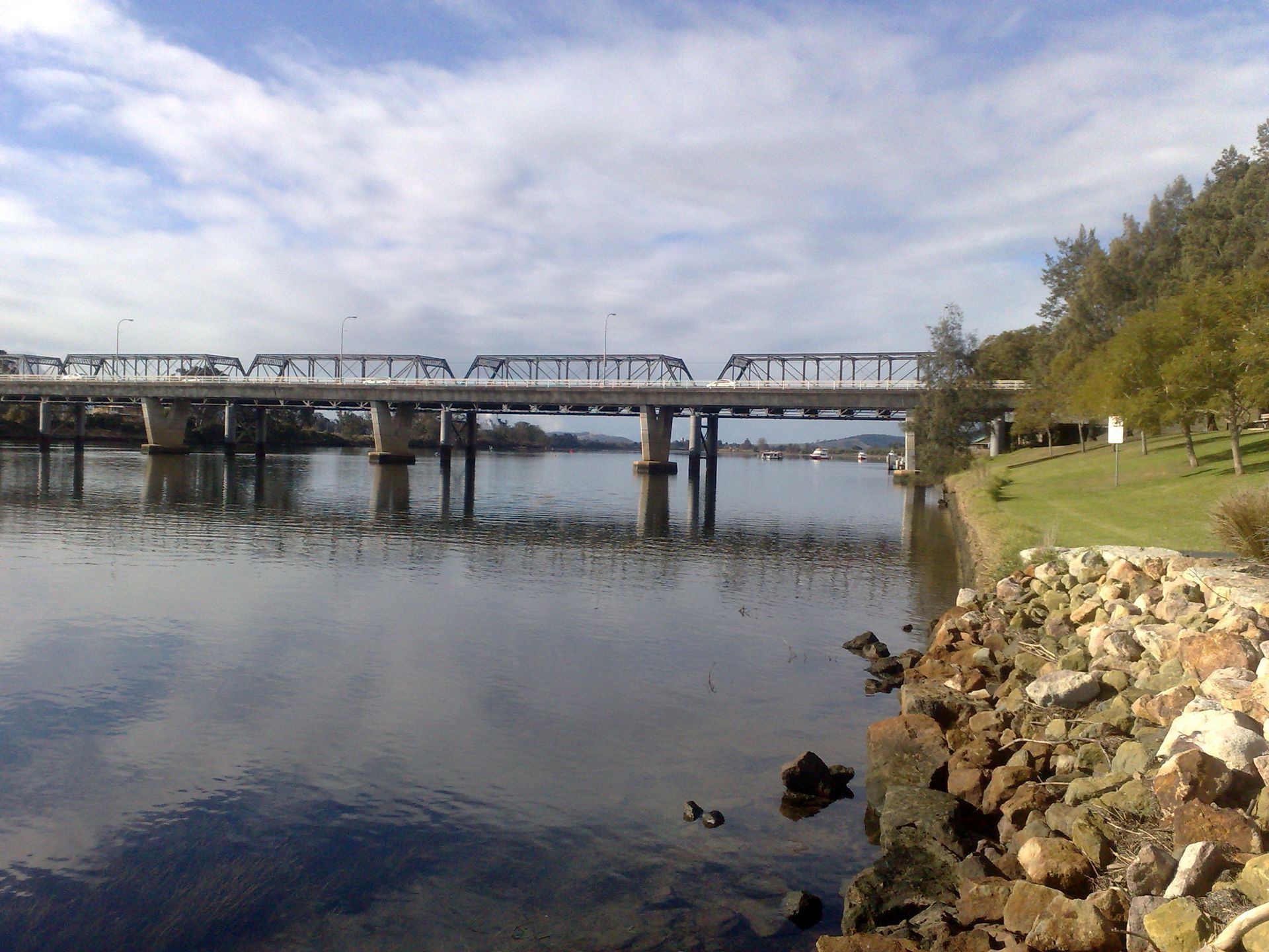 Viewing the east and west sites and the marina downstream of the bridges on the eastern side.